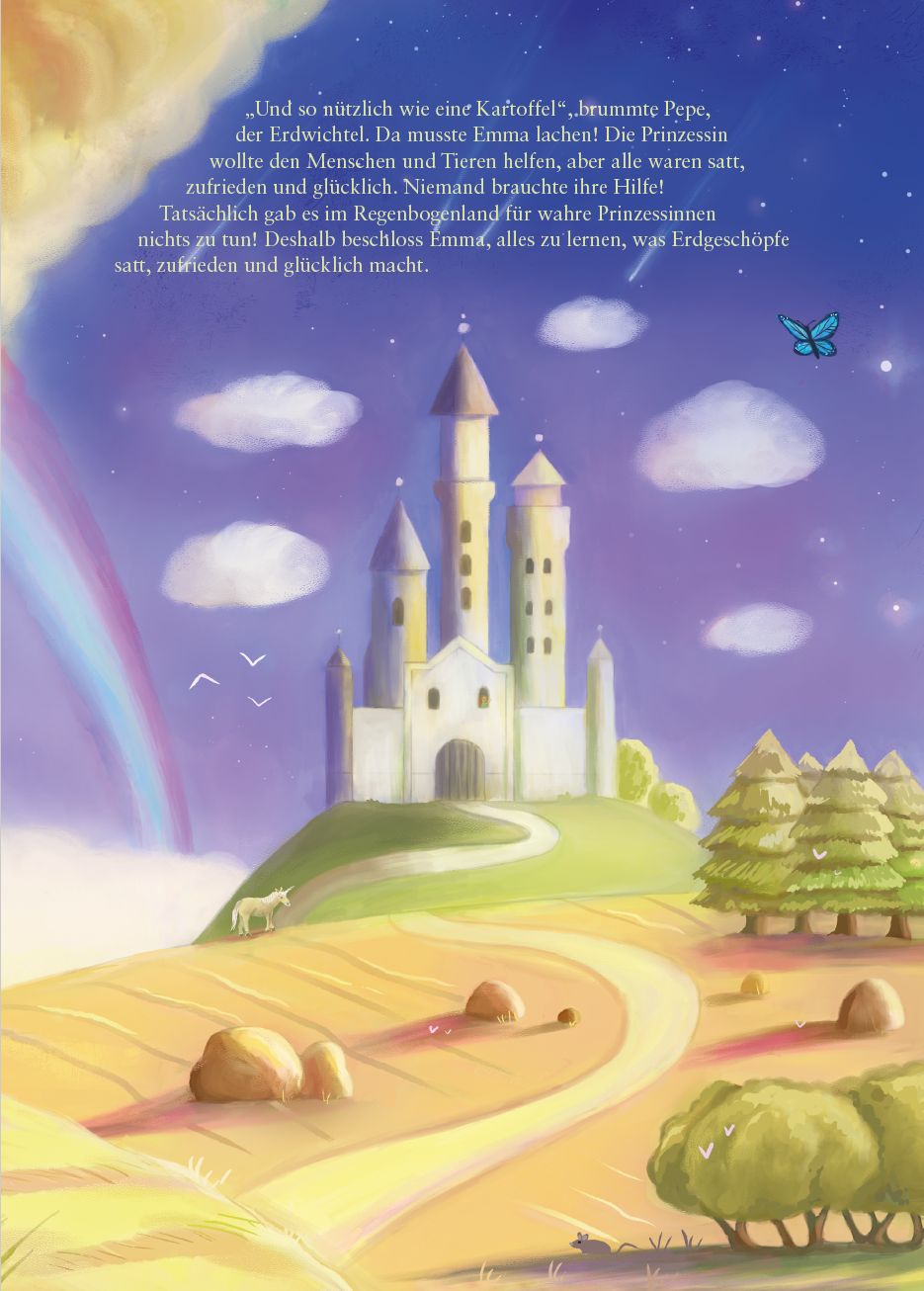 Ein Märchen in dem eine echte Prinzessin aus dem Regenbogenland sich auf eine gewagte Reise begibt um ihrer Bestimmung zu folgen.