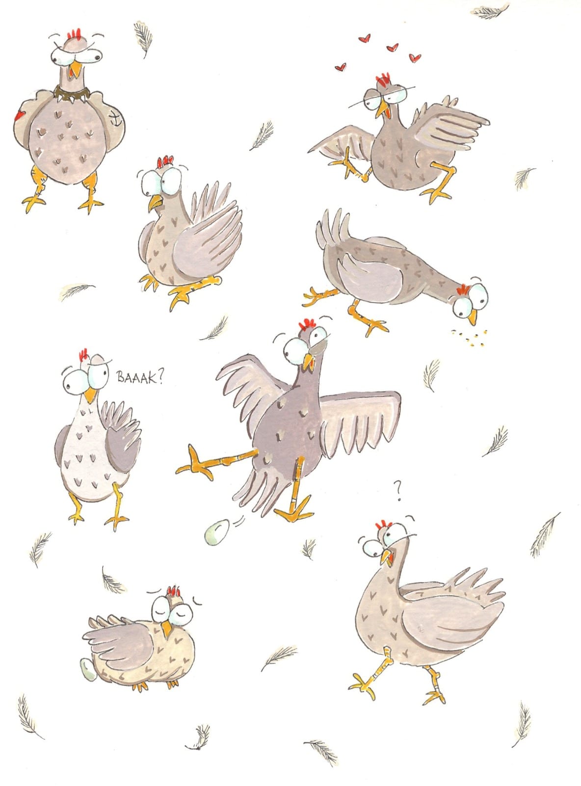 Maulwurf Gregor hatte vor langer Zeit einen Maulwurfsgang von der Erdihöhle in den Hühnerstall gegraben. Die Erdis brachen auf zu den Hühnern. Das Huhn Bessi begrüßte die Gäste und erkundigte sich: „Gockockock, was führt euch in den Hühnerstall?“