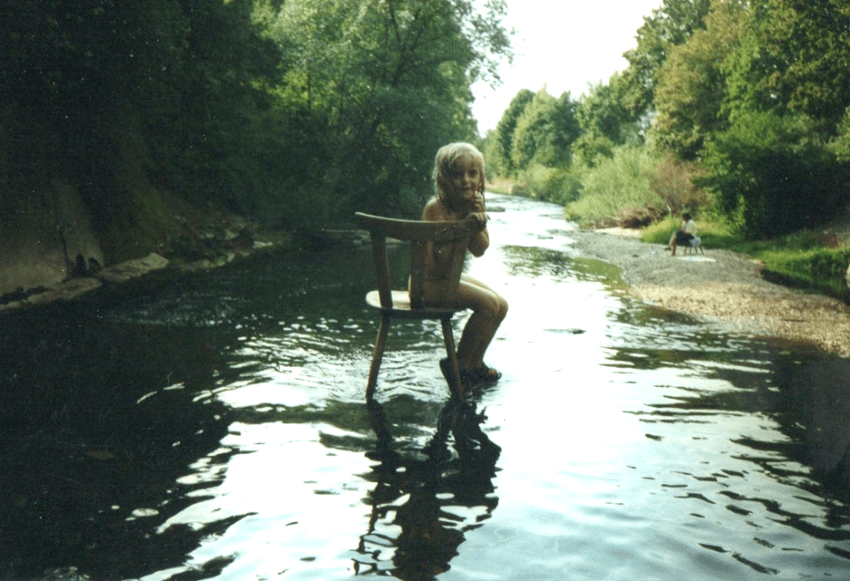Ich hatte das Glück an der Lauter aufzuwachsen. Schon als Kind spielte ich an diesem Fluss, wie vor mir mein Vater und sein bester Freund, mein Onkel Erich. Damals spielten alle Kinder am Fluss. Onkel Erich ist mittlerweile 83 Jahre alt. Erich machte als Baby schon Bekanntschaft mit den Gefahren des Flusses, denn seine große Schwester sollte auf ihn aufpassen, spielte aber lieber mit ihrer Freundin. Sie ließ den kleinen Erich schlafend im ungesicherten Kinderwagen zurück. Wie sollte sie auch ahnen, dass ihm Gefahr drohte! Sie war ja noch ein Kind! Erich muss wohl irgendwann aufgewacht sein und im Wagen herumgezappelt haben. Vielleicht war ihm ja langweilig, wie dem kleinen Häwelmann in dem berühmten Märchen von Theodor Storm. Erich hampelte und strampelte, der Kinderwagen wackelte und kam ins Rollen, er rollte die Straße hinunter, mit Karacho die Böschung hinab und brauste schwungvoll in den Fluss hinein. Die Strömung ergriff den Kinderwagen und trieb ihn mit. Erich schaukelte in seinem Wagen wie in einem Schifflein. Sanft wiegten ihn die Wellen.